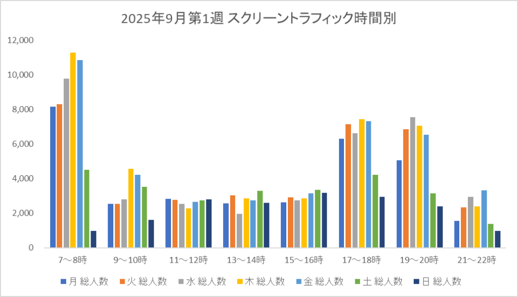 矢野口駅前ビジョン|スクリーントラフィック調査(2025年9月第1週)